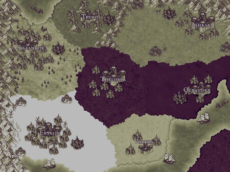 La magia había sido un elemento clave a la hora de la creación, o eso es lo que susurran los silencios a las afuéralas de cada reino. Se saber que antes de la civilización como la conocemos actualmente hubo algo más, unas encarnaciones divinas que desaparecieron sin dar razones de aquello, o quizás si las dieron pero nadie fue capaz de entenderlas. Hay trazos incompletos de la historia esparcidos por todos lados y que solo aquellos con los ojos en donde no deberían pueden notar. Leyendas y mitos sobre ellos, Los Primeros les llaman, antecesores incluso a los dioses que se conocen entre los reinos de esta tierra fantasiosa, siendo que tan solo una sola especie podría ser capaz de recordar algo de ellos, grandes animales alados que surcaban los cielos y pasaron años ocultos entre las montañas más altas, dragones, los guardianes del conocimiento que tofos parecen hacer olvidado.Pero, ¿a quién le importa esa historia? Está claro que nuestro centro no es ese…Hace más de trescientos años, cuando el mundo volvió a pertenecer al plano divino y los únicos límites eran la mente humana se alzaron seis nuevas naciones, quienes batallaron por ver quien lograba conquistar la mayor cantidad de tierras. Una guerra no tardó en desatarte entre todos ellos, sangre y magia, dos elementos que no deberían juntarse lo hicieron, desacatando el horror y violencia que muchos no pudieron evitar.Esto no fue algo que agradó a los dioses, ellos quienes habían otorgado aquellas tierras en pos de construir un lugar donde pudieran convivir en paz, aunque no hicieron nada, en espera de que fueran los causantes quienes pudieran poner fin a aquel baño de sangre. Aunque no fue así, la destrucción que causaban no dejó de aumentar y cualquier tipo de esperanza por parte de los dioses terminó por esfumarse.Tras los primeros cien años inmersos en aquella guerra de poder aparecía la tierra divina, que se volvió a convertir en un territorio inexplorado y que prometía una vida eterna llena de lujos y riquezas. Ningún rey tardó en intentar conquistarlo, fallando en cada intento, era territorio de los dioses y no cualquiera podía gobernar sobre él. Un criatura desconocía fue la primera en llegar, en asentarse y, con la bendiciones de los seis dioses, pudieron final a aquella guerra que en un pasado no parecía tener final. Los dragones fueron quienes terminaron con aquello que los humanos no pudieron, dejando poco después que una desconocida familia fueran los siguientes en asentarse en el nuevo mundo junto a ellos.Así fue como el conflicto dejó de ser el centro de los acontecimientos, una nueva era de alzaba frente a ellos. Los seis reinos terminaron de aparecer, junto a uno más, el principio de todo, Thelorya, tierra de paz.